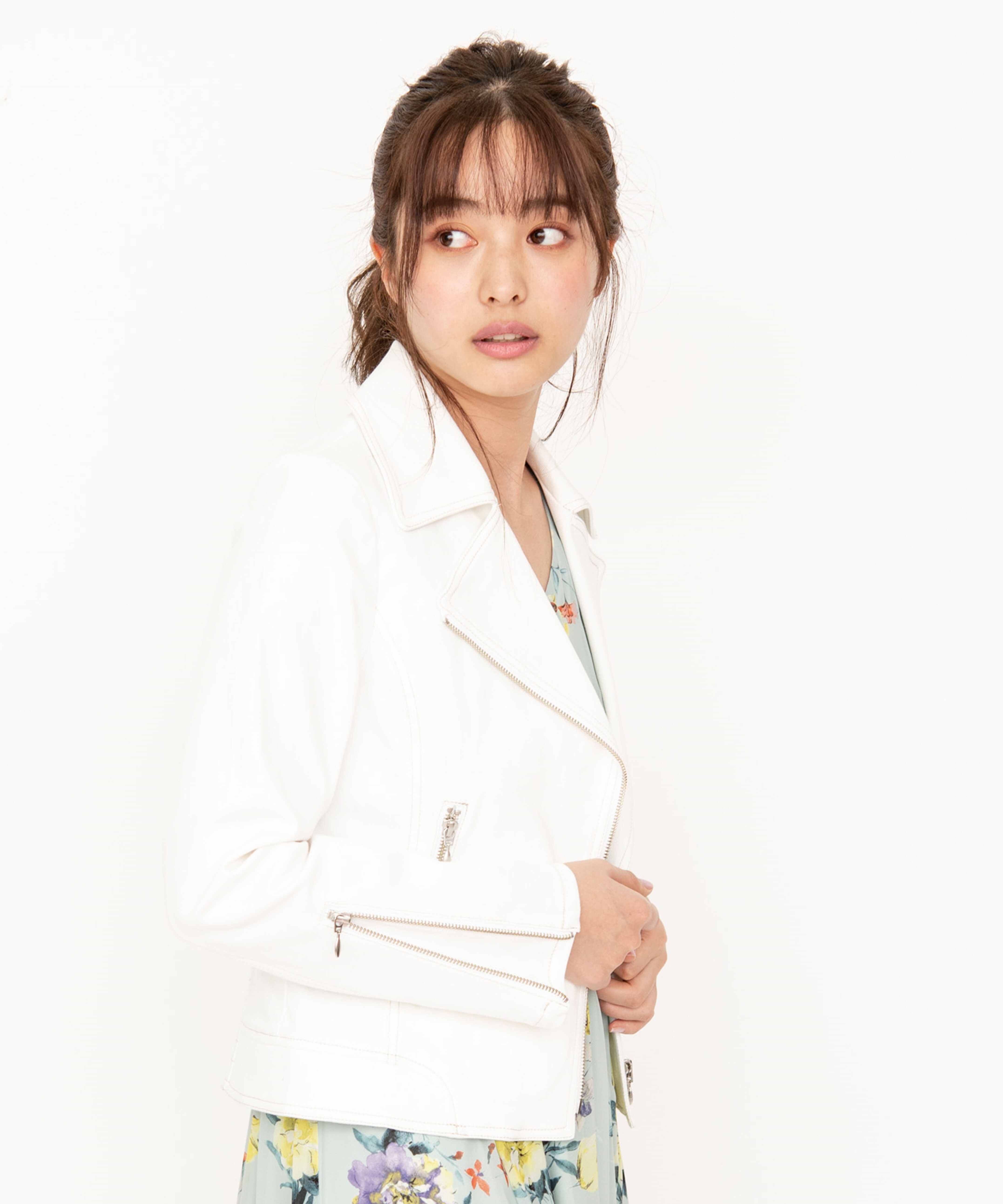 白 ライダース ジャケット